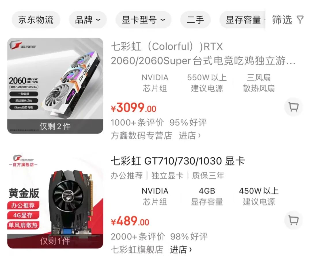 在京东这个电脑配件最大的交易平台,很多玩家也开始利用平台规则,合法合规抵制着高价显卡。“京东库存显示和其他平台不一样,即使我们拍下不付款,系统也会默认产品的库存-1,而48小时之内我们可以不付款也不取消订单,就能让店铺处于缺货状态而无法营业。”