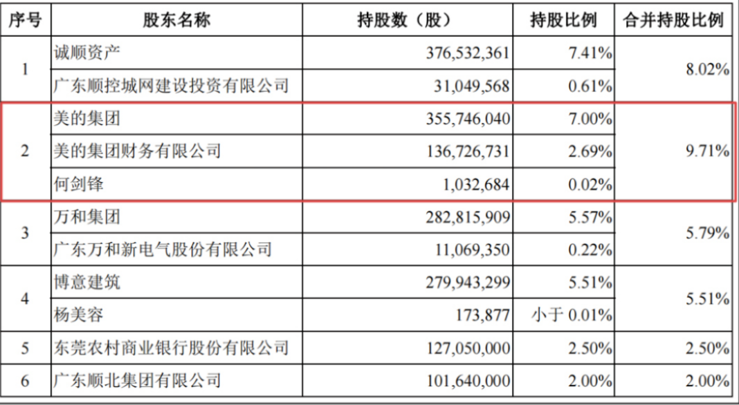 何剑峰还携手美的入股了有着顺德“金库”之称的顺德农商行。目前该银行正在准备IPO,《招股书》显示,第二和第五大股东为美的集团、美的财务公司,何剑锋个人持股0.02%,三者合计持股9.71%,力压包括诚顺资产和广东万和集团在内的股东。