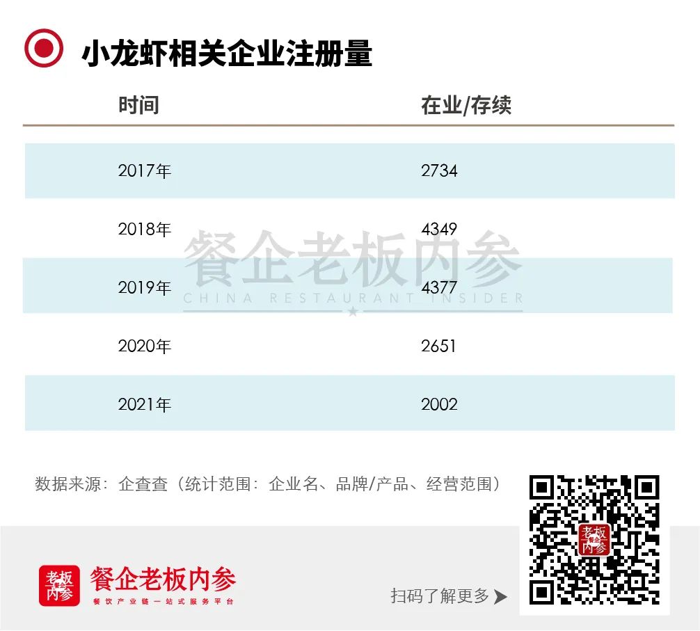 从数据上来看,小龙虾相关企业注册量减少,总产值出现缩水。