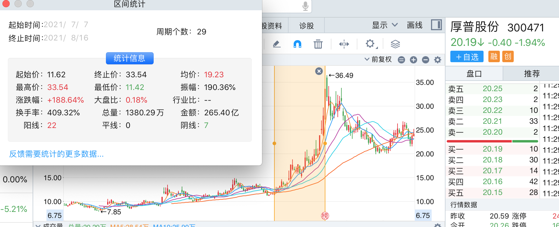 实际上在此之前,持股5%以上的股东唐新潮,才刚刚减持了1.499%;公司董事兼副总经理钟骁、副总经理郭志成、副总经理兼董事会秘书胡莞苓、监事吴军、监事于鑫等,也刚刚合计减持了0.0137%;而江涛此前在2021年8月份至11月,也减持过1.2188%。而这些套现,均发生在2021年7月上旬至8月下旬那波大涨之后。盘面显示,2021年7月7日至8月16日,厚普股份的累积涨幅由188.64%。