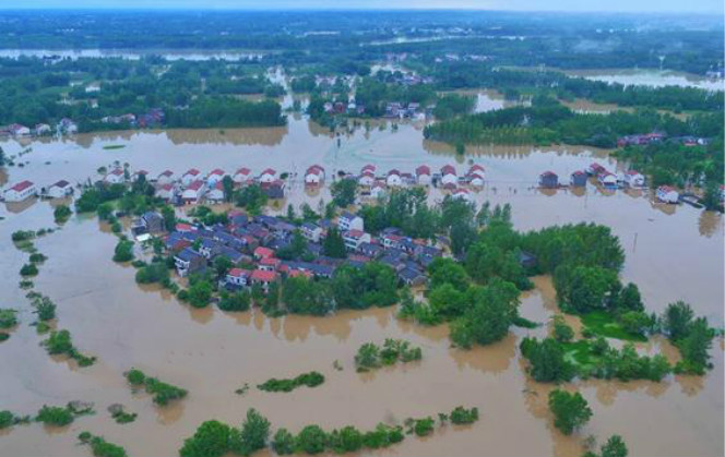 【图集】航拍暴雨溃口后的武汉新洲 现场一片汪洋