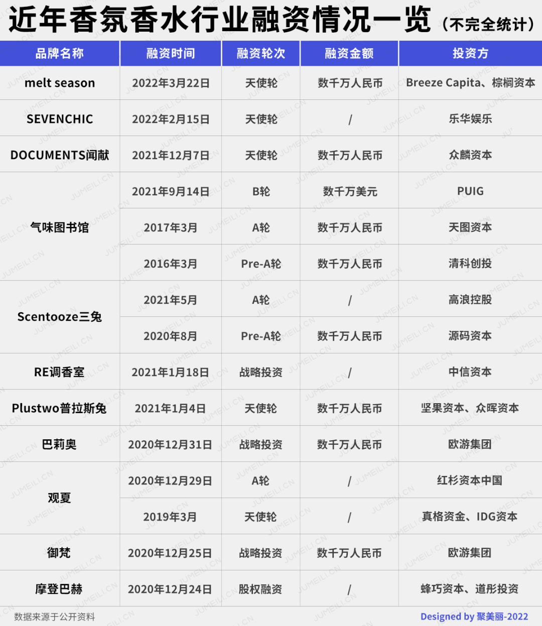 企查查数据显示,自2017年以来,中国香氛企业注册量显著增长,目前相关企业注册量已超过2000家。也有不少品牌获得了资本市场的青睐。