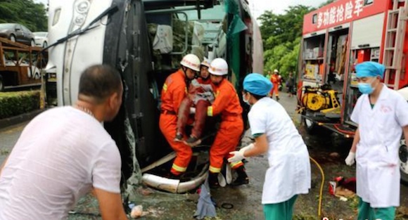 广西:一大巴侧翻24人伤 事故车辆涉嫌传销活动