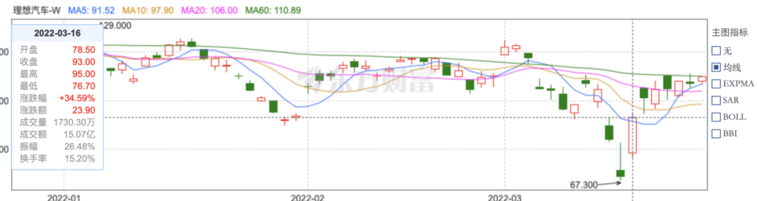 3月第三周的交易日,遭遇中概股断崖式下跌的蔚来(NIO)、理想汽车(LI.O)、小鹏汽车(XPEV.N)三家在美股上市的新能源车企,在美股迎来股价反弹,股价周内分别上涨29.81%、27.15%、25.58%,位列股价涨幅榜的前三位,也是仅有的股价周内涨幅超过20%的个股。值得注意的是,在恒指方面,蔚来(09866.HK)、小鹏汽车-W(09868.HK)、理想汽车-W(02015.HK)股价也在近7个交易日内接连攀升,涨幅均突破30%,高景气度依旧维持。