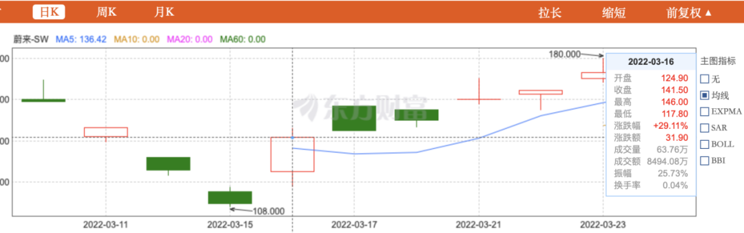 虽受近期中概股大幅波动的影响,蔚来(09866.HK)港股上市后的成绩却不容忽视:其股价先抑后扬,从最低点112港元/股上升至172.1港元/股,时至截稿,总市值2912亿港元。