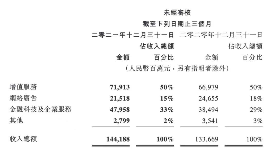 需要指出的是,2021年Q4腾讯的营收结构发生了重大变化。