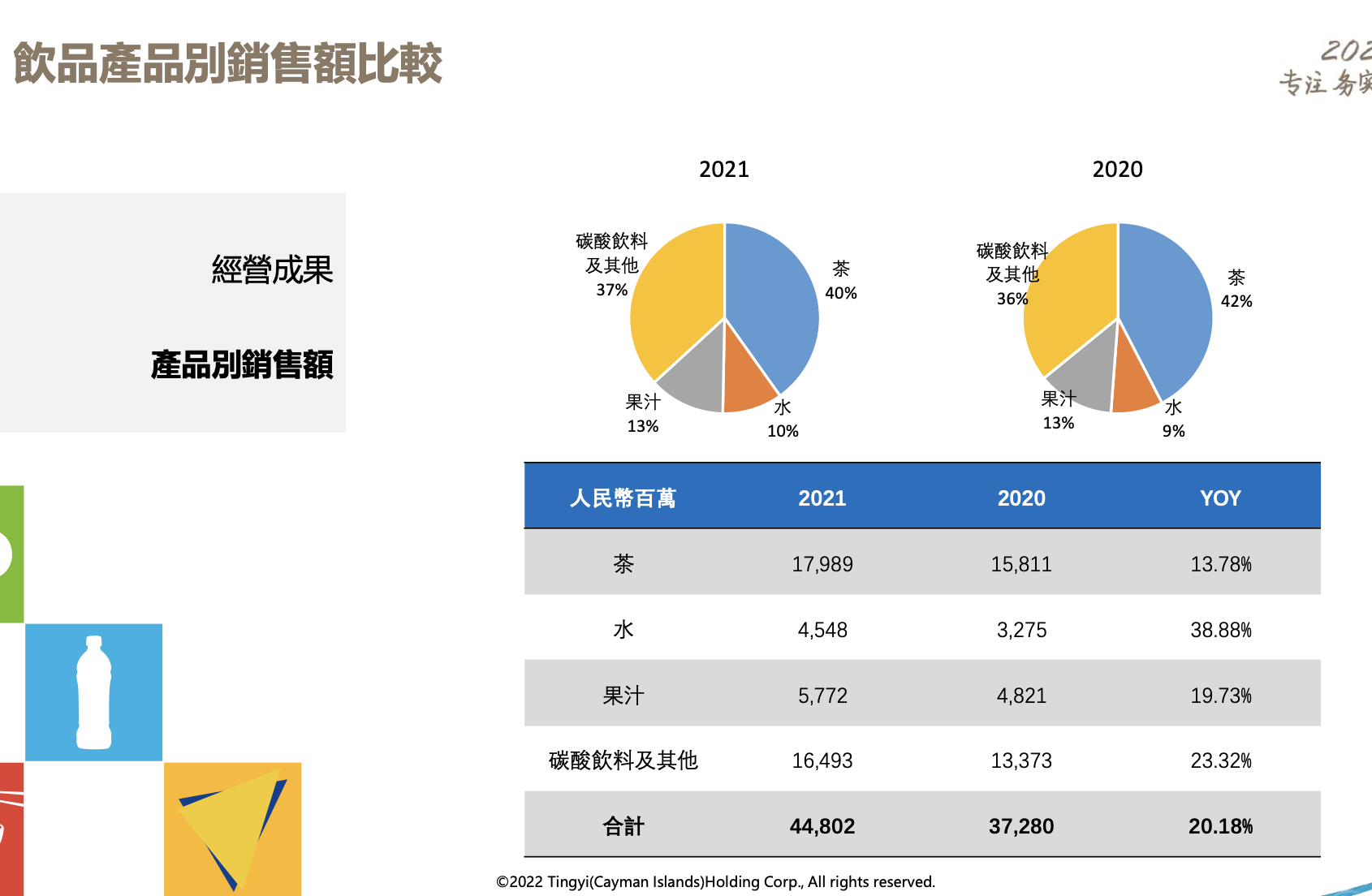 而农夫山泉茶饮料48.3%的增长幅度,也高于同为饮料企业的康师傅(HK:00322)、统一企业中国(HK:00220),后二者的茶饮料增长分别13.78%、15.2%。