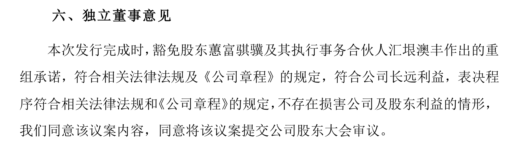 至于这份承诺,在2021年9月23日,汇源通信召开了第十一届董事会第二十五次会议,关联董事对该议案回避表决,审议通过了《关于豁免股东广州蕙富骐骥投资合伙企业(有限合伙)重组承诺的议案》。