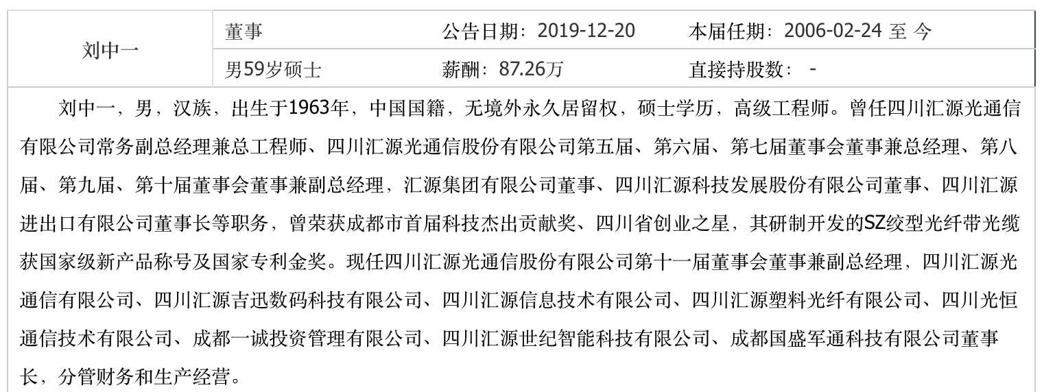 资料显示,刘中一为公司董事、副总经理,主管会计工作的负责人,为成都一诚投资管理有限公司的董事长,四川一诚农业有限责任公司为成都一诚投资管理有限公司控股子公司。同时刘中一为四川光恒通信技术有限公司董事,四川飞普科技有限公司系四川光恒通信技术有限公司全资子公司。
