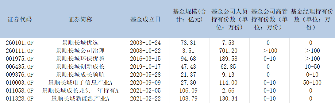 从数据来看,景顺长城公司员工自购份数最多的是景顺长城公司治理,达到了701.2万份,公司高管及基金经理自己持有份额均超过了100万份;杨锐文自购景顺长城环保优势也超过了100万份,景顺长城电子信息产业自购了50-100万份。