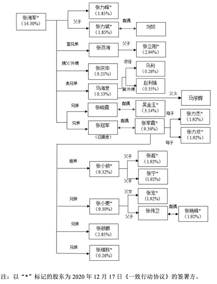 招股书显示,翼辰实业前身为成立于2001年的河北翼辰实业集团有限公司,由股东张海军、张冠军、张锁群、张小更等出资登记设立。截至招股书签署日,张海军家族(包括张海军、张军霞、张小锁、张小更、张立刚、吴金玉、张超、张力杰、张力峰、张艳峰、张力斌、张力欢、张宁、张宏、张瑞秋等15名自然人)合计持有及共同控制公司63.80%的股份,为公司的控股股东、共同实际控制人。