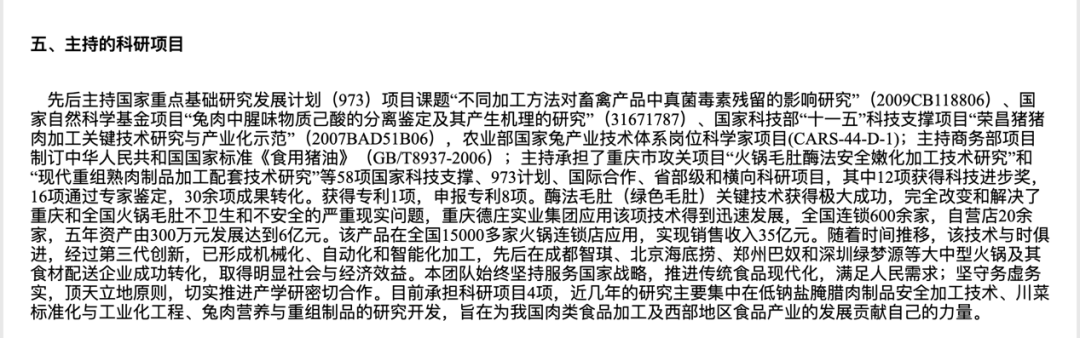 然而,牛刀财经却在西南大学食品科学学院官网发现,“木瓜蛋白酶嫩化技术”系该技术系西南大学博士生导师李洪军主持承担的重庆市攻关项目成果。