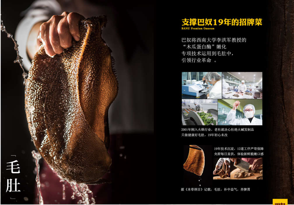 在杜中兵的”产品主义“故事中,毛肚的角色非常重要。而一项“木瓜蛋白酶”嫩化技术又是“毛肚故事”的重中之重。