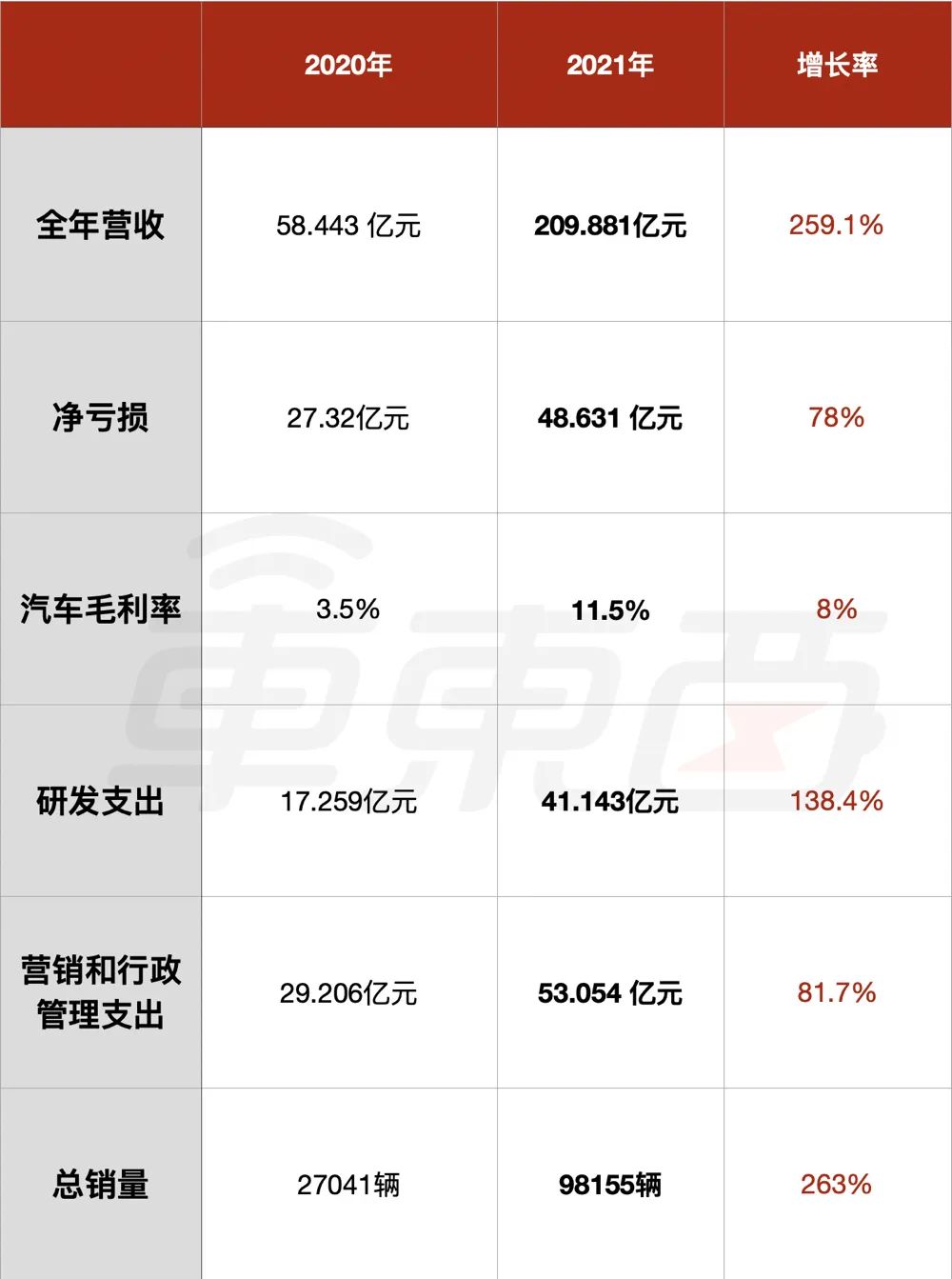 在营收方面,2021年度小鹏汽车的总收入为209.881亿元人民币,较2020年同期的58.443亿元相比增长259.1%。