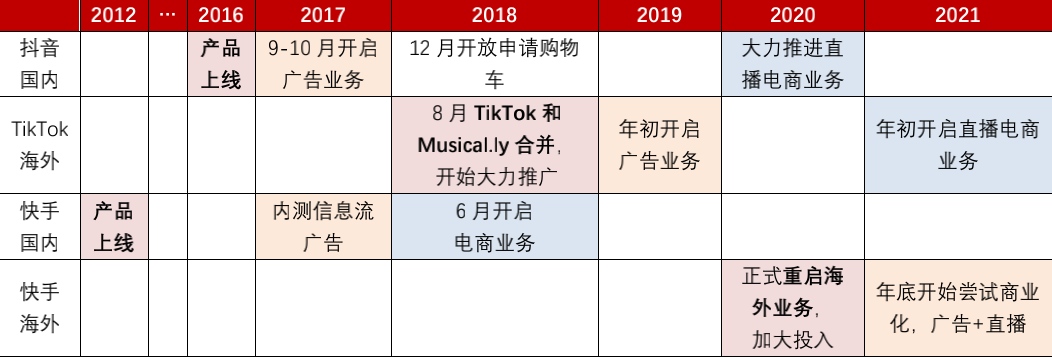 TikTok、快手海外商业化进程,来源 / 东方证券报告