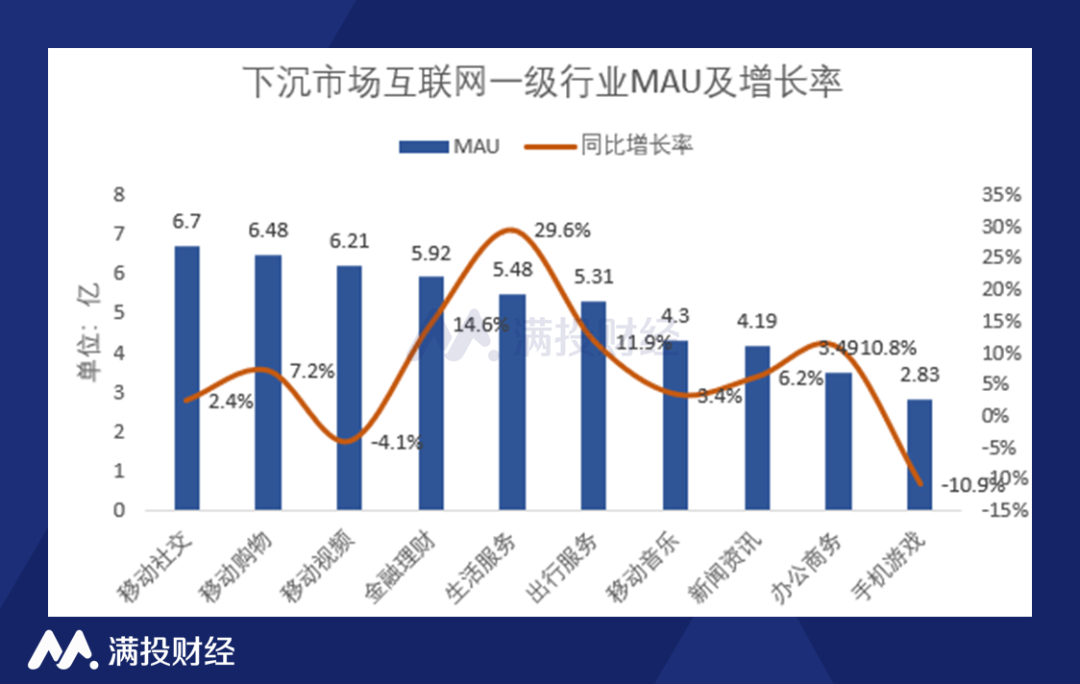 一方面,该行业发展势头强劲,“美团优选”体现了公司进行社区团购业务的核心竞争力。据公开报道,截至2021年四季度,美团优选12月的日单量约为4500万件/日,四季度日均单量介于4000-4500万件/日之间,件单价约为8-9元,季度GMV有望达到350亿元,均高于“社区团购”模式的其他竞争者。此外,据QM数据,下沉市场互联网行业中”生活服务”类MAU增长最快,这同样能够支持公司新业务业绩规模高速增长。