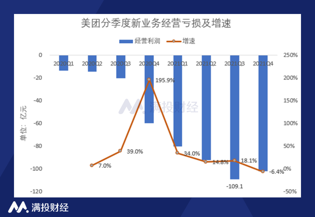 3月22日,综合O2O生活服务平台龙头美团-W(03690.HK)公布了2021年Q4及全年财务业绩。公司Q4营收495.23亿元,全年实现营收1791.28亿元,同比分别增长30.6%、56.0%;2021年毛利润为424.7亿元人民币,实现了整体毛利率增速的提升,达24.7%。但由于新业务经营亏损的持续扩大,21年全年美团净亏损达235.4亿元,其中新业务经营亏损额为20年同期的3.5倍。
