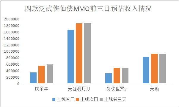 腾讯《天刀》前三天平均预估收入可达180万美元,但《庆余年》前三天平均预估收入约为50万美元,不足《天刀》收入的1/3,也略低于《天谕》。
