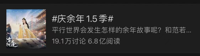 从热搜话题曝光来看:理解目标用户的追剧需求。对于《庆余年》手游来说,既然目标用户是影视剧粉丝,在营销侧则尝试理解目标用户取得需求,其中包括对影视剧的“催更”。因此,《庆余年》手游在微博上创造了一个新话题:#庆余年1.5季#。