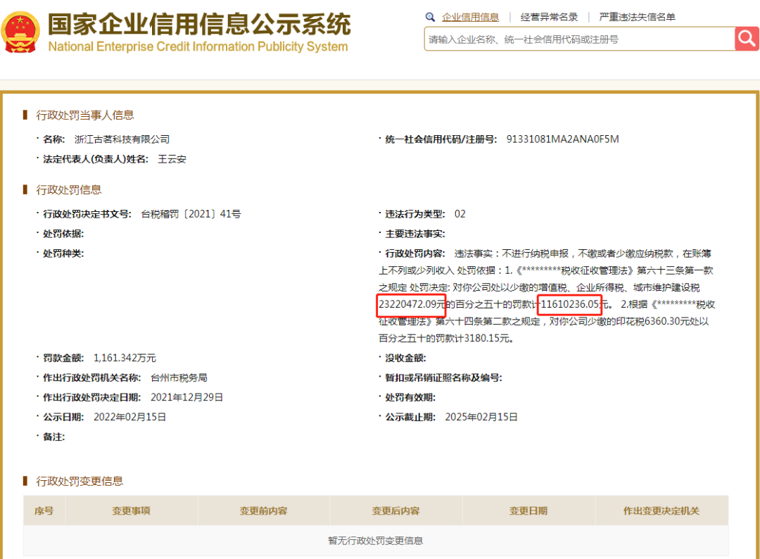 来自国家企业信用信息公示系统网站显示,古茗奶茶关联公司浙江古茗科技有限公司被台州市税务局罚款1161万余元。