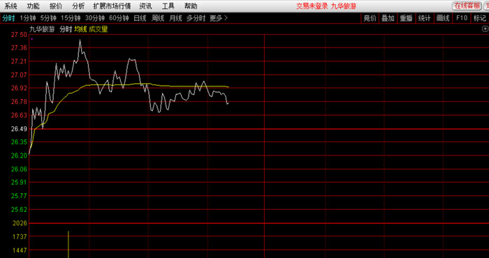 从二级市场走势来看,九华旅游在年报披露前后,公司股价走势强势。3月29日早盘开市后,九华旅游的股价快速冲高。当日午盘,该股收于26.6元/股,涨0.42%。