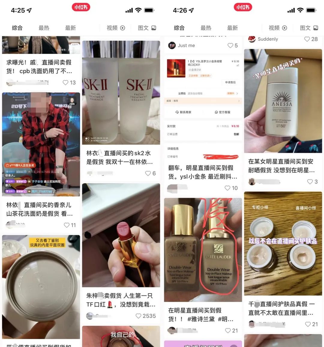 在小红书上,关于“直播间假货”的笔记已达3800+篇,有不少消费者反映在直播间买到假货,而且明星艺人也时有爆雷。