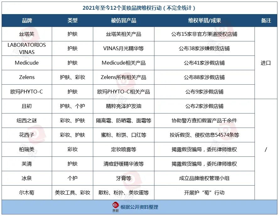 事实上,不仅是Zelens、丝塔芙店铺被“山寨”,这种冒牌行为在美妆领域已经泛滥成灾。据青眼不完全统计,目前有12个品牌公开了山寨店铺名单或进行打假活动,其中丝塔芙、Zelens等共5个进口美妆品牌,及国货品牌且初共曝光了193家店铺,另外柏瑞美、芙清等国货品牌也被假货困扰。可见,除了有知名度的国际大牌,现在越来越多的新锐品牌和国外小众品牌开始被“造假商”盯上。