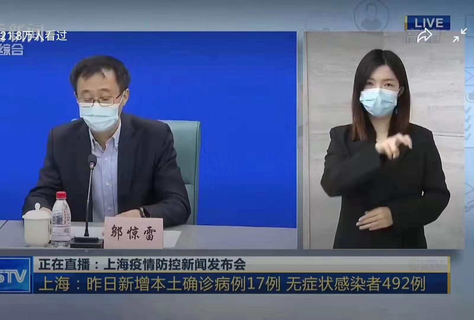 疫情期间,为了让市民了解到最新的疫情动态,每天都会举行疫情发布会。但是有一部分市民由于听力障碍无法听到发布会的内容。截至2021年底,上海持证听障残障人士有8万余名。