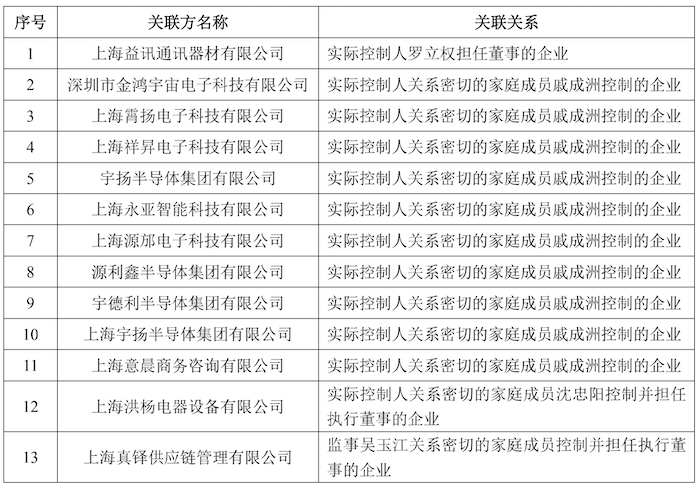 截至招股书签署日,灿瑞科技实控人为罗立权,罗立权妹妹罗菊儿的配偶为戚成洲,戚成洲控制的企业系公司关联方。