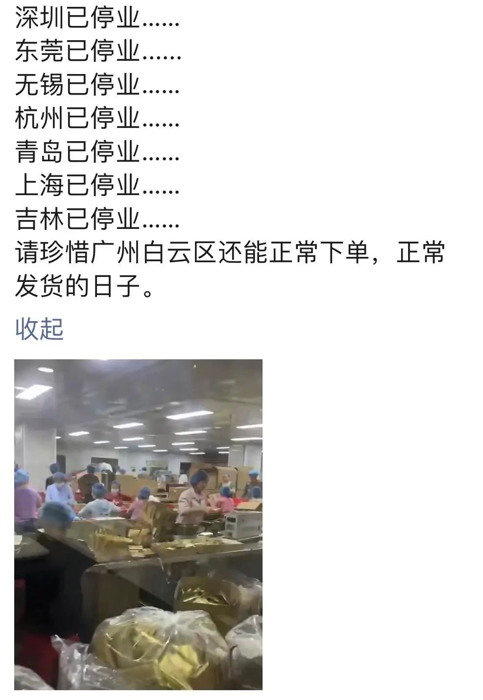 而广州小芭泽化妆品有限公司则透露,因为疫情,大部分工人被困在家了,没办法上班,太难了,货还等着交。