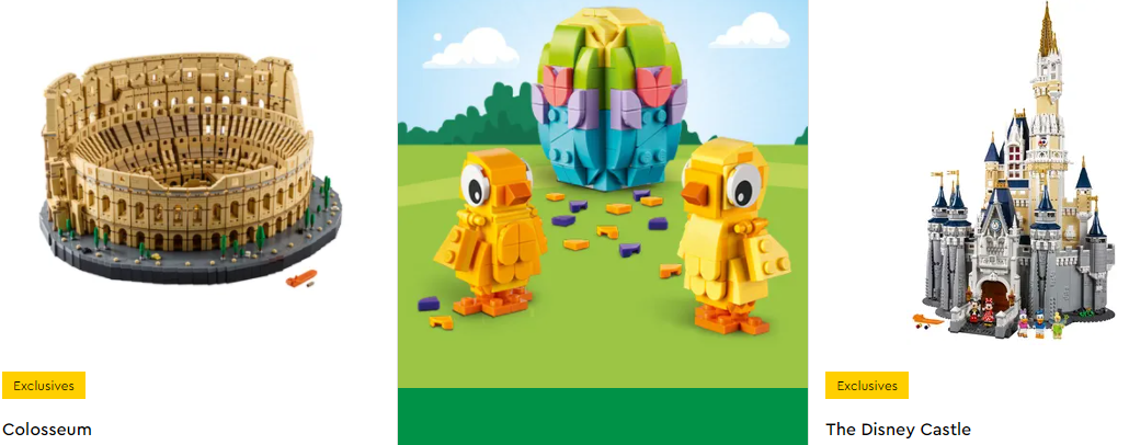 LEGO City、LEGO Technic、LEGO Creator Expert、LEGO Harry Potter 、LEGO Star Wars 。