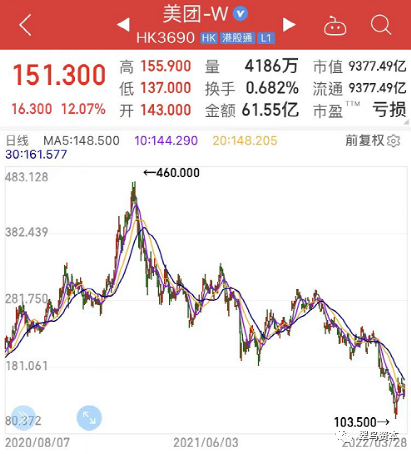 一度是港股的明星股票,美团股价曾高至460元,目前在100元上线徘徊,已正式退出“万亿市值俱乐部”。
