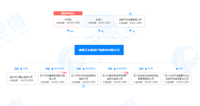 成都天友成立于2015年,法人为白燕川,疑似实控人为刘天艳。这两位除了都是失信被执行人,也同时是成都天友国际酒店有限公司(曾用名“成都天友旅游开发有限公司”)的股东,各持股50%。值得一提的是,成都天友旗下的四川天友彝海旅游股份有限公司及四川木里洛克旅游资源开发股份有限公司,已分别于2019年及2021年被注销。