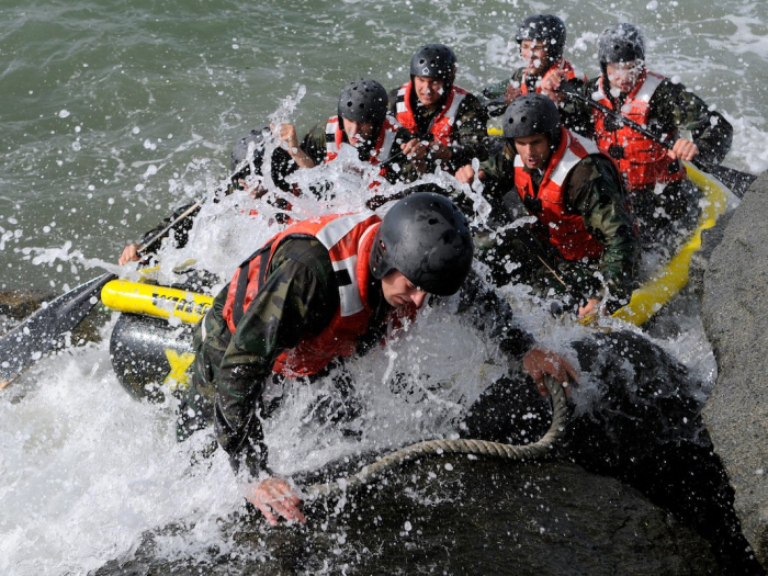 巴宾和其它教官将海豹突击队候选者分为七人一支的队伍,进行一系列划船比赛。该比赛要求各团队扛着重约200磅(90公斤)的救生筏跑步,并将筏子放到海上。几轮比赛之后,第2队几乎总是第一,第6队则每次都是最后一个。
