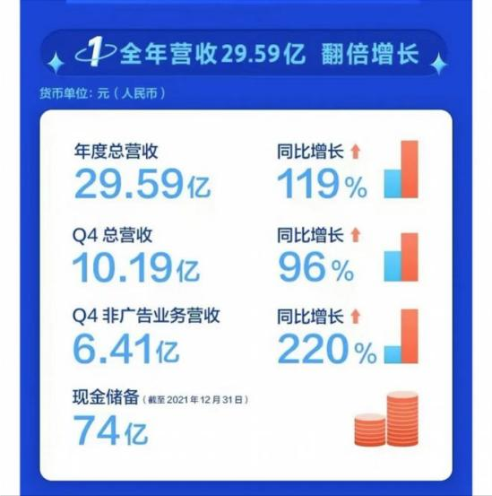 根据财报挖掘的核心数据显示,知乎(NYSE:ZH)在2021年总营收29.59亿元,同比增长118.9%,净亏损为12.989亿元(约合2.038亿美元),而2020年净亏损5.176亿元。不按美国通用会计准则(non-GAAP),调整后的净亏损为7.471亿元(约合1.172亿美元),而2020年净亏损3.375亿元。