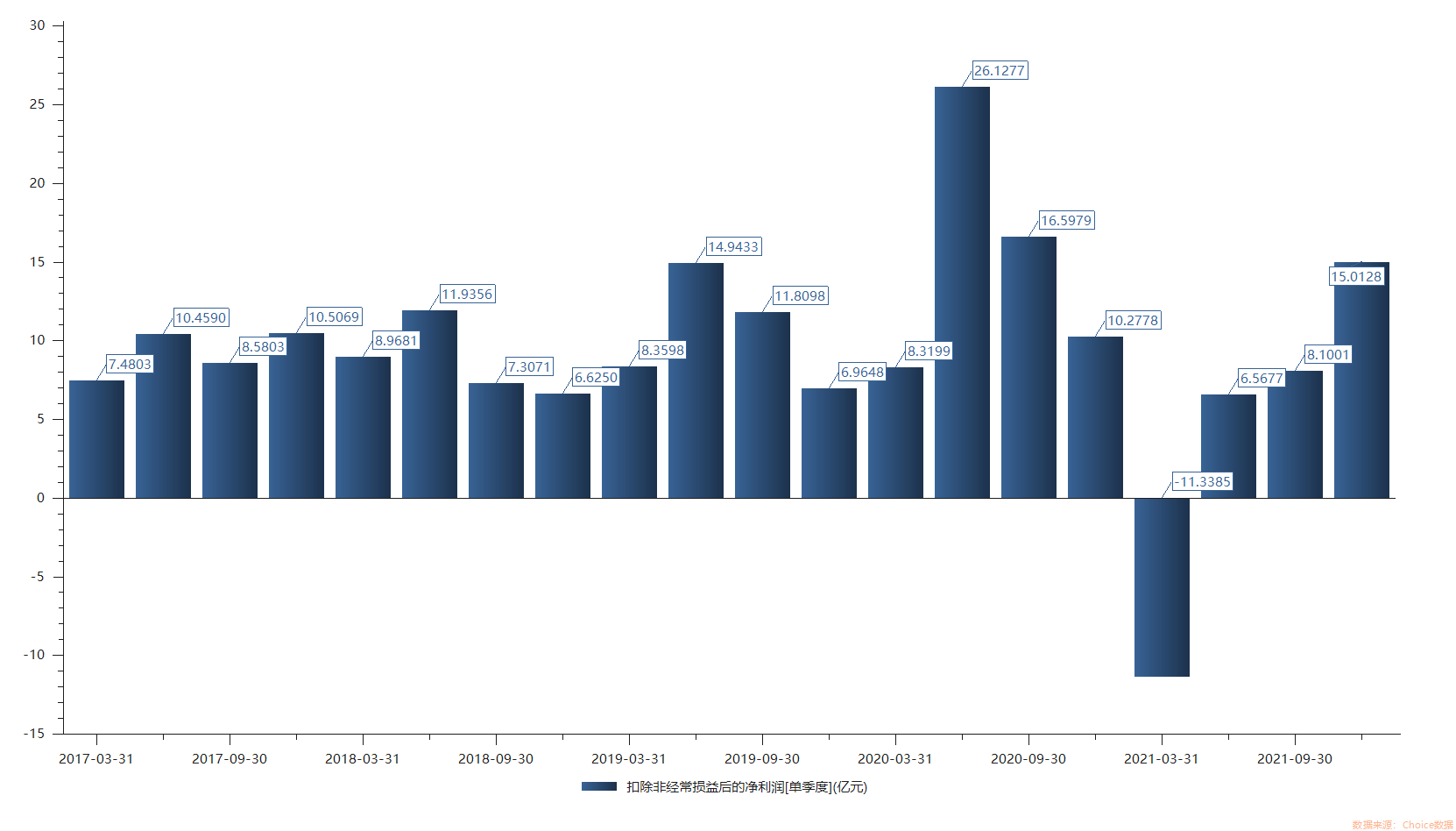 分季度来看,顺丰控股2021年第一季度、第二季度、第三季度、第四季度实现的扣非归母净利润分别为-11.3亿元、6.6亿元、8.1亿元和15.0亿元。