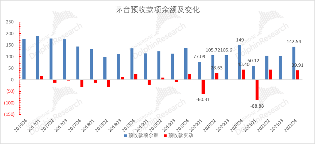 预收账款 143 亿,环比增加40亿,可以认为在正常年度中四季度经销商向茅台酒厂提前部分打款以备战2022年春节旺季行情。