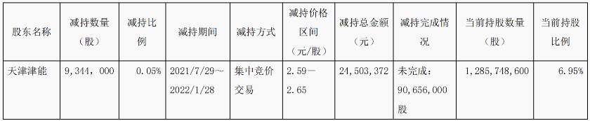 2022年1月29日,大唐发电发布的《持股5%以上股东集中竞价减持股份结果公告》披露了天津市津能投资有限公司(简称“天津津能”)减持股份的具体情况。