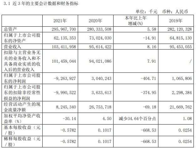 3月30日晚间,大唐发电披露2021年年度报告,全年实现营业收入1034.12亿元,同比增长8.16%,实现了千亿元收入的突破。不过,归属于上市公司股东的净利润为-92.64亿元,由上一年的盈利30.40亿元转为亏损,出现了增收不增利的情况。