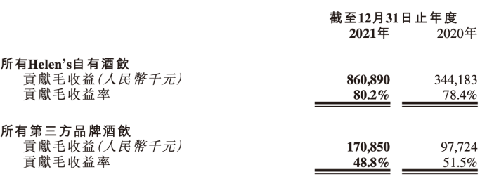 区别于不少酒馆,海伦司酒饮以自有产品为主、第三方品牌为辅。2021年,海伦司售卖的自有产品和第三方品牌酒饮收入分别为8.6亿元和1.7亿元,前者毛利率高达80.2%,后者为48.8%。