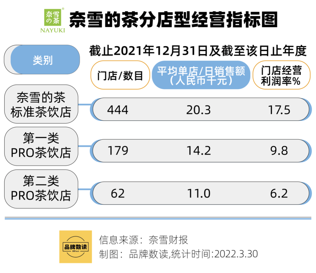 根据东吴证券研究测算,奈雪标准店的经营利润率为24.5%,选址于购物中心的一类PRO店和选址于社区、写字楼等其他位置的二类PRO店的经营利润率分别为25.6%和26.5%,奈雪目前的数据与之相比远远不够。