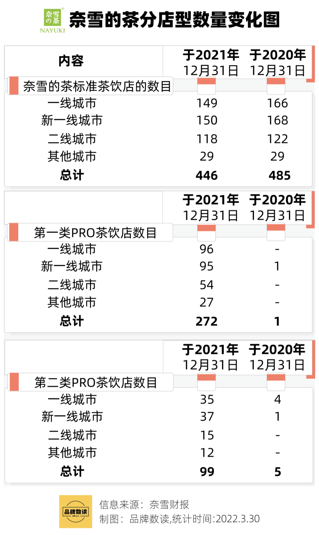 而集团此前在招股书披露的开店计划是在2021年与2022年主要于一线城市和新一线城市分别开设约300及350家门店,PRO店在计划中仅占70%。由此可见,奈雪在2021年开始将主战场向PRO型门店转移。