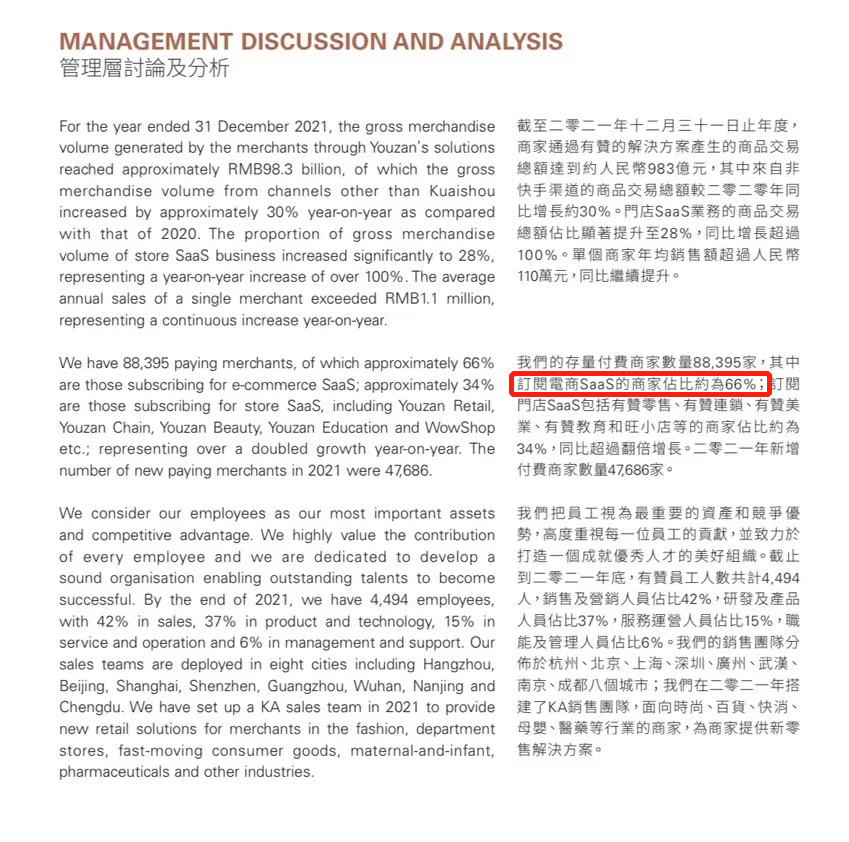 不过,从财报可以看出,有赞在2021年的确重点发力有赞新零售。
