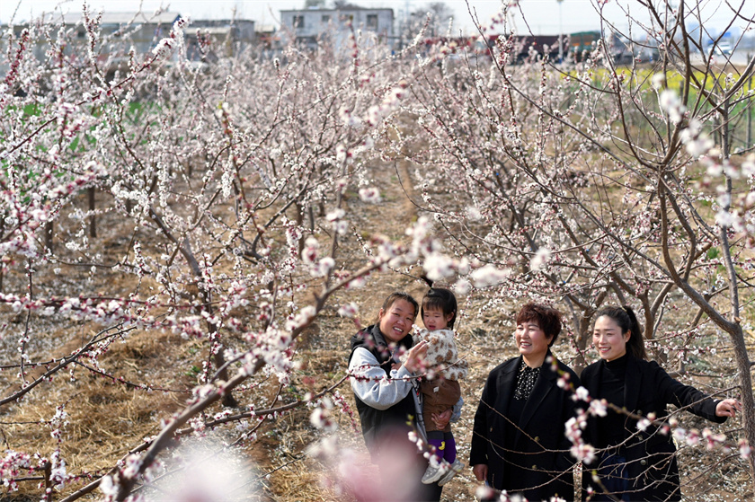 如今,三月春风,杏花微雨时,春意正阑珊。远远望去,一片片粉白,当你循着这片片粉白进来时,一束束的杏花纵横交错,令人眼花缭乱,一朵朵小巧玲珑的粉红色杏花缀满了枝头,以它们天然的娇美和妩媚的风姿,给杏花村增添了无限的色彩和希望。