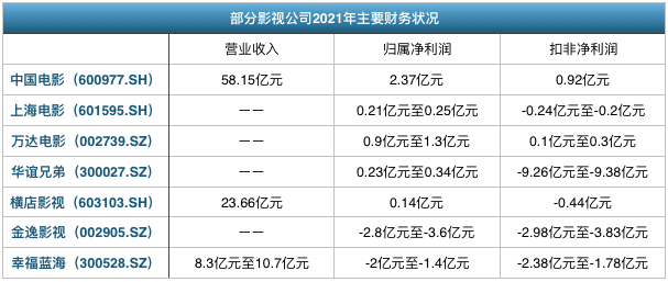 行业主要上市公司中,除了中国电影(600977.SH)、万达电影(002739.SZ)等少数几家实现盈利外,其他公司扣非净利润基本处于亏损状态。