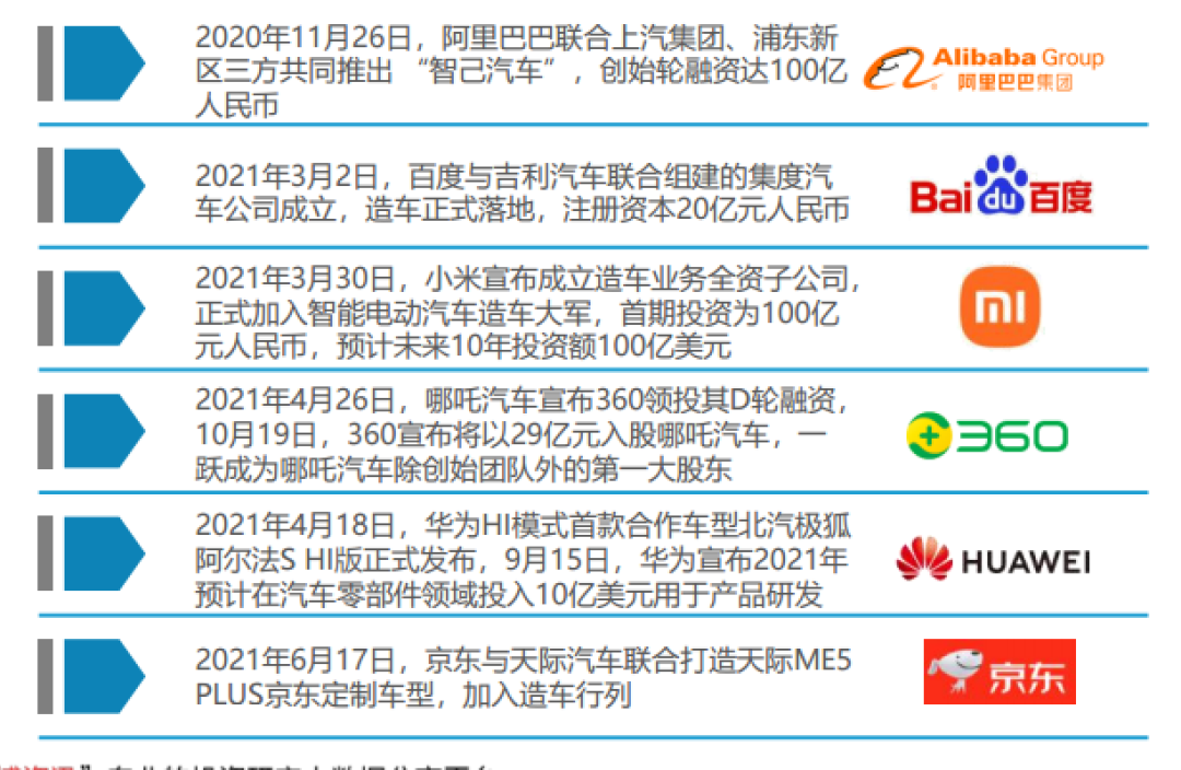 图片:互联网巨头入局汽车行业 来源:亿欧网