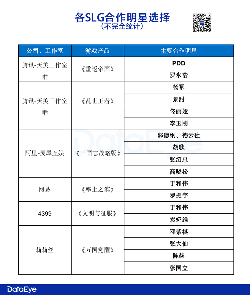总体而言,国内SLG产品合作明星大致有三大方向: