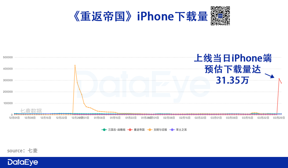 DataEye研究院今天从客观数据出发,全面解读《重返帝国》公测来的表现、背后的营销特点,以及面临的问题。