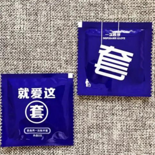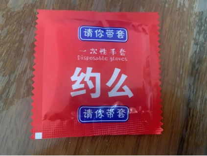 更难受的是,这种类似营销已经渗透到我们生活中的各种场景。你点外卖买个炸鸡,送过来的一次性手套要么是这样。