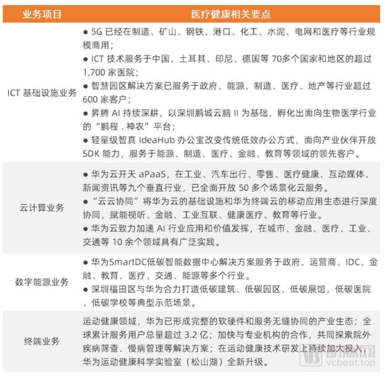 华为主要业务中涉及医疗健康的内容,资料来源:华为2021年报,动脉网整理制图